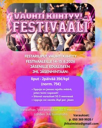 Varaukset: Lahden JHL ry:n toimisto 050 369 9920 jhltoimisto@gmail.com