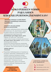 Jäsenedut voimassa 1.5.2026 alkaen. Jäsenyys/henkilöllisyys todistettava pyydettäessä. Lippuja kaudelle 2026 saa suoraan Pajulahden seikkailupuiston lipunmyynnistä jäsenhintaan 19 €/lippu (norm. 30 €). Lippuja voi ostaa max. 4 kpl/jäsen. Lisäksi huikea bungee-trampoliini jäsenhintaan 5€/10min (norm. 10€/10min). Alennus suoraan seikkailupuiston kassalta jäsenkorttia/jäsenyystodistusta näyttämällä. Käteinen ei käy maksuvälineenä puistoon. Etua on rajoitettu. Edun tullessa täyteen etu päättyy.