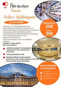PÄIVÄREISSU TUURIN KYLÄKAUPPAAN LA 9.5Lahden JHL ry os. 048 järjestää päiväreissun Tuurin kyläkauppaan La 9.5.2026. Paikan voi varata jäsen + avec. Hinta 20€/jäsen ja 30€/avec.